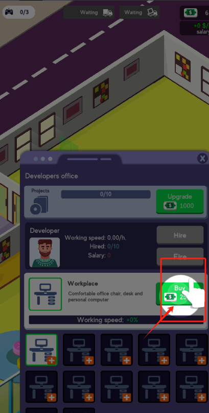 2、花25块购置新工位,攒够1000元升级办公室,以此提升员工的工作效率。