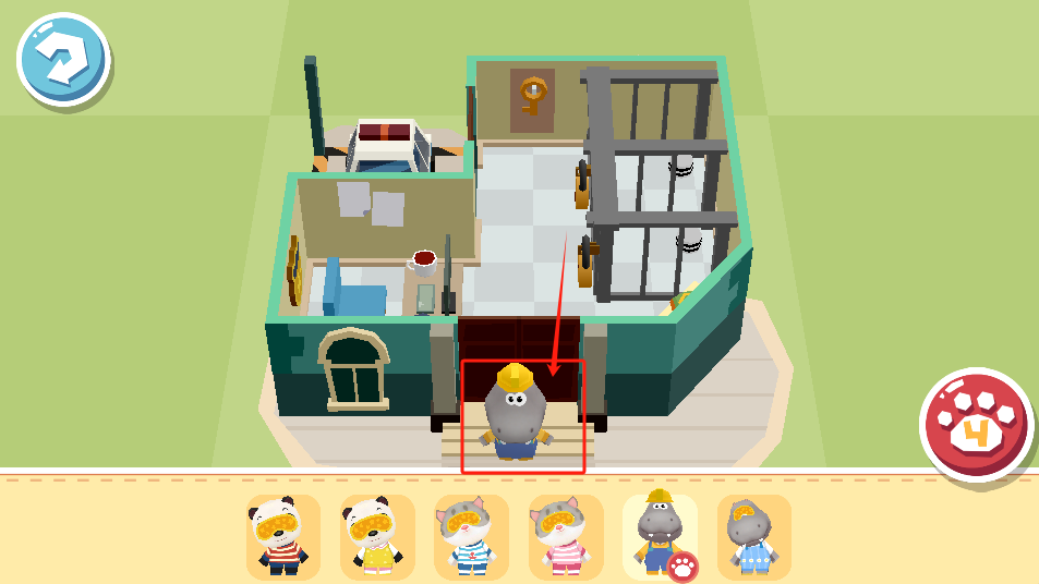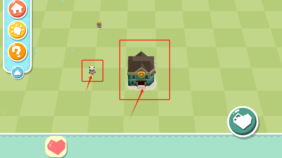 2、选左侧功能键,给蓝房子和熊猫小人布置新装饰。