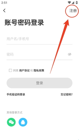3、紧接着点击右上角“注册”。