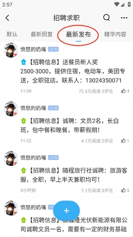 1若想获取最新的招聘动态,可前往“招聘求职”板块,点击其中的“最新发布”选项,该区域集中展示了近期更新的各类招聘信息。