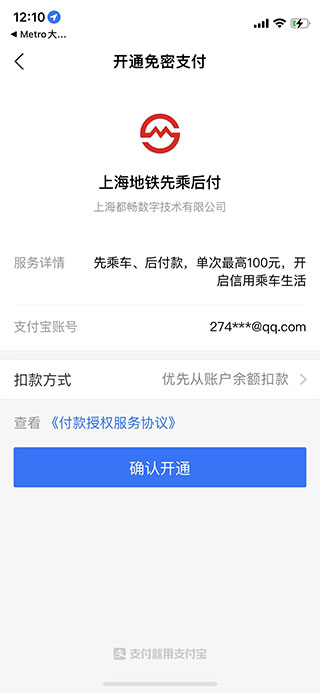 7、确认开通后,点击返回商户,系统将自动生成上海地铁乘车码