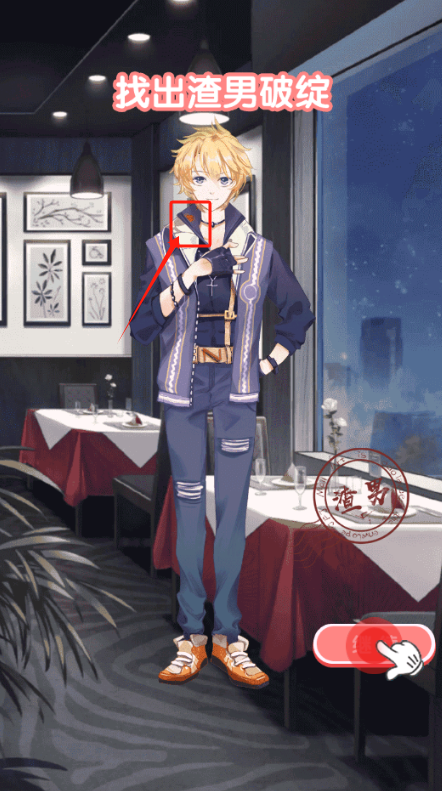 3、放大男生衣领的细节部分,从中寻找能作为破绽的证据,之后点击红色按钮提交你的判断结果。