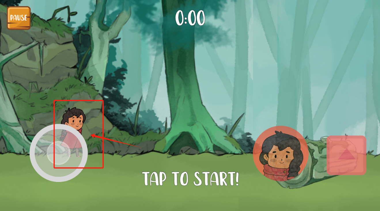 3、点TAP TO START开始冒险,红框是主角,右上角粉色按钮是功能键。