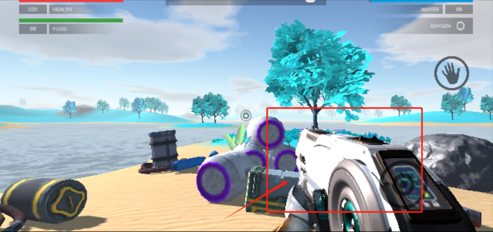 3、点击红框内的白色装置进行操作,前方的彩色圆环是任务目标,请注意观察上方的生命值与资源数值。