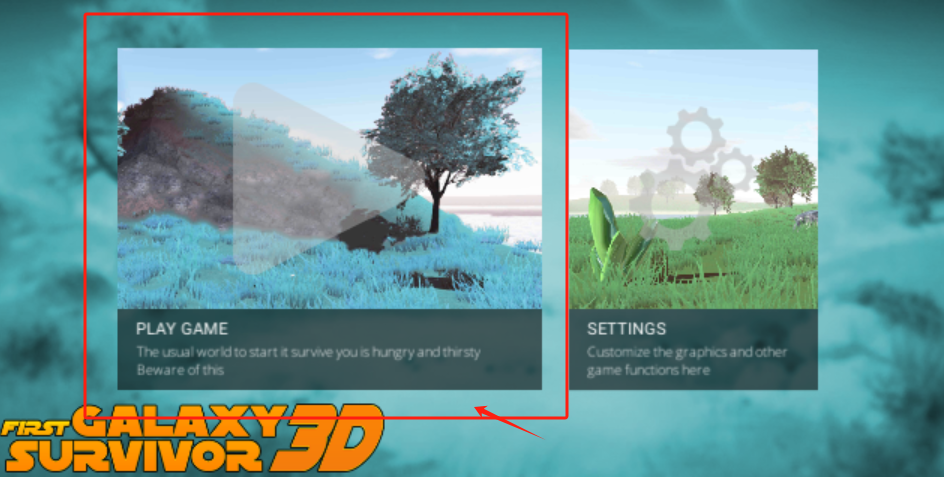1、点击红框内的PLAY GAME按钮即可开始游戏,右侧的SETTINGS选项可用于调整画面设置,需要注意的是游戏中的角色会有饥饿和口渴的状态变化。
