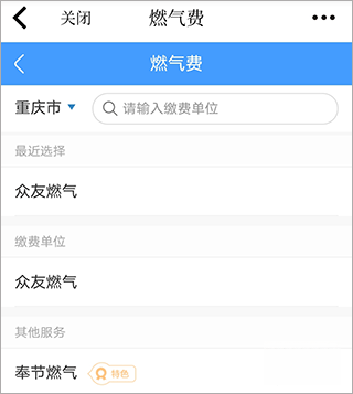 1、打开软件后,于便民服务界面点击燃气费选项。
