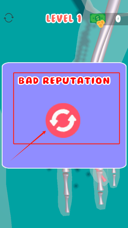 3、出现BAD REPUTATION提示后,点红色圆圈按钮重新开始。
