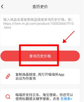 把淘宝或者京东上的商品链接复制下来粘贴到这个界面,然后点击“查询历史价格”按钮。