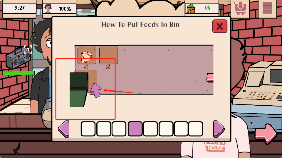 2、按照红框提示,把不要的食物拖到垃圾桶图标处。