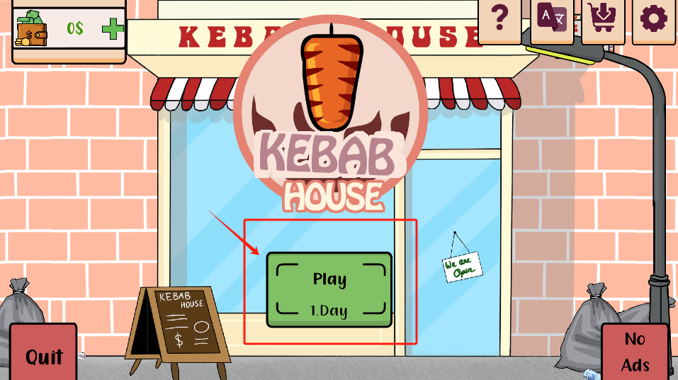 1、看到标有“Play 1 Day”的绿色按钮后,直接点击该按钮即可开始营业。