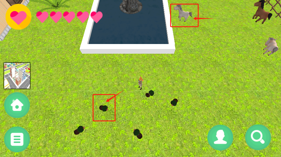 2、清理草地上的马粪,喂养马匹,收集资源升级农场设施。