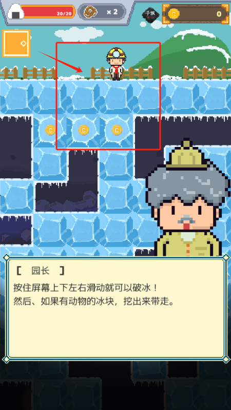 3、按住屏幕往四个方向划,挖开冰块找动物。