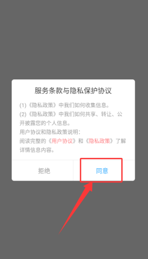 1、在服务条款界面点击"同意",进入程序主页面。