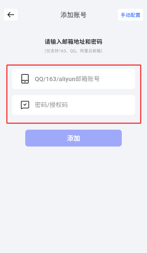 2、选择“添加邮箱账号”,支持主流邮箱服务(如163、QQ、阿里云企业邮等)。