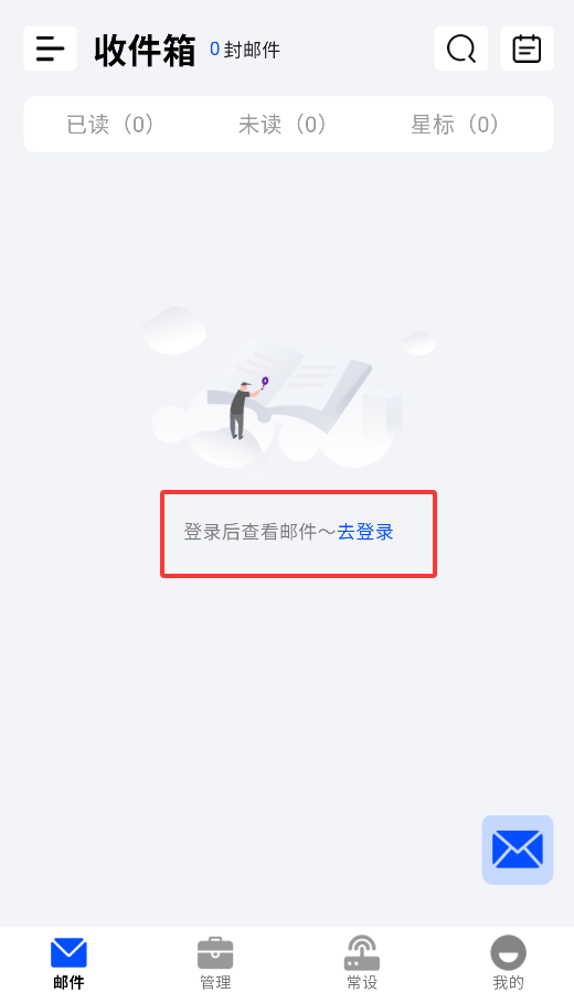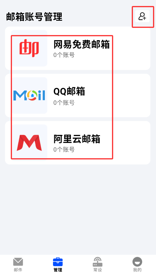 1、启动后,点击“邮箱登录”按钮,进入账号管理页面。