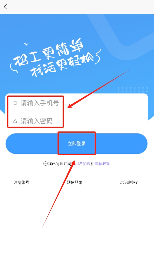 2、进入登录页面后,填写好手机号与密码,确认信息准确无误,即可成功登录。
