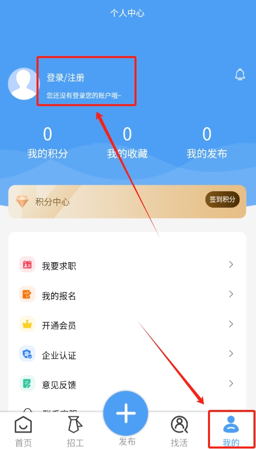 1、启动工程e家应用程序,先定位到“我的”界面,点击进入后即可找到登录按钮。