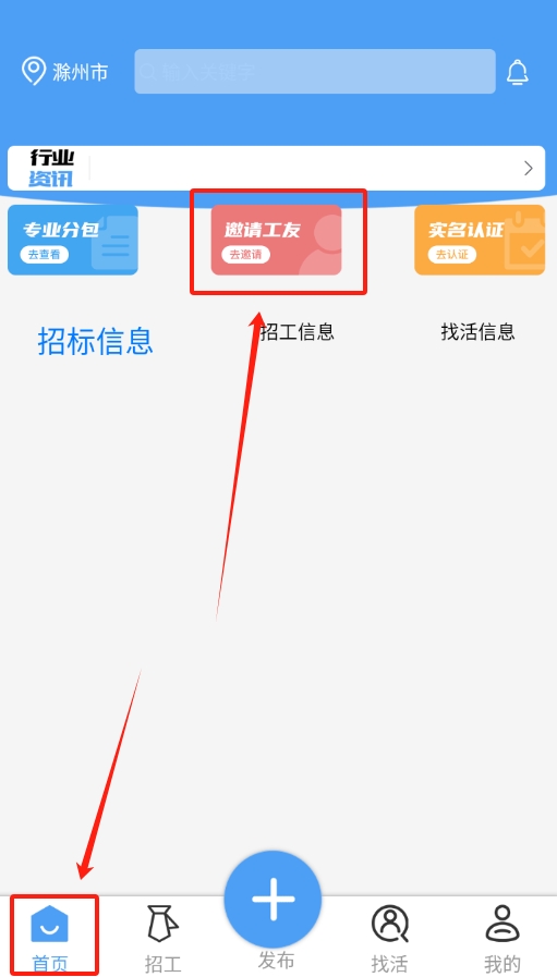 3、登录成功后回到首页,找到“邀请工友”按钮,点击即可分享给身边的工友。