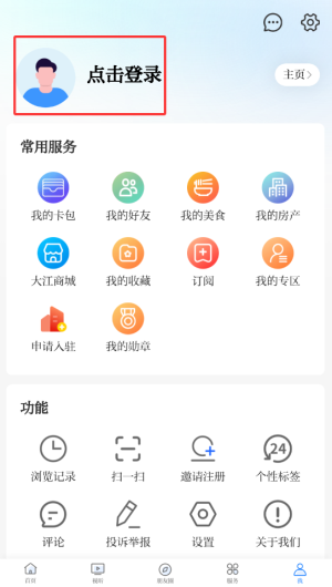 1、启动大江看看后,点击界面右下角的"我的"图标进入个人中心页面。