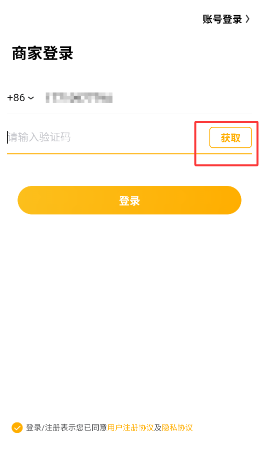 3、完成拼图验证后,自动发送短信验证码,输入即可直接登录商家后台(无需密码)。