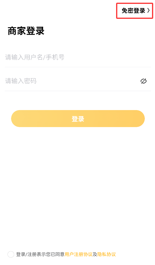 1、启动后,在登录页面点击“免密登录”选项,进入安全验证流程。