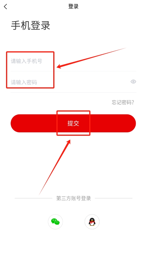 2、在登录页输入手机号和密码,确认信息没错后,点登录按钮进入软件。