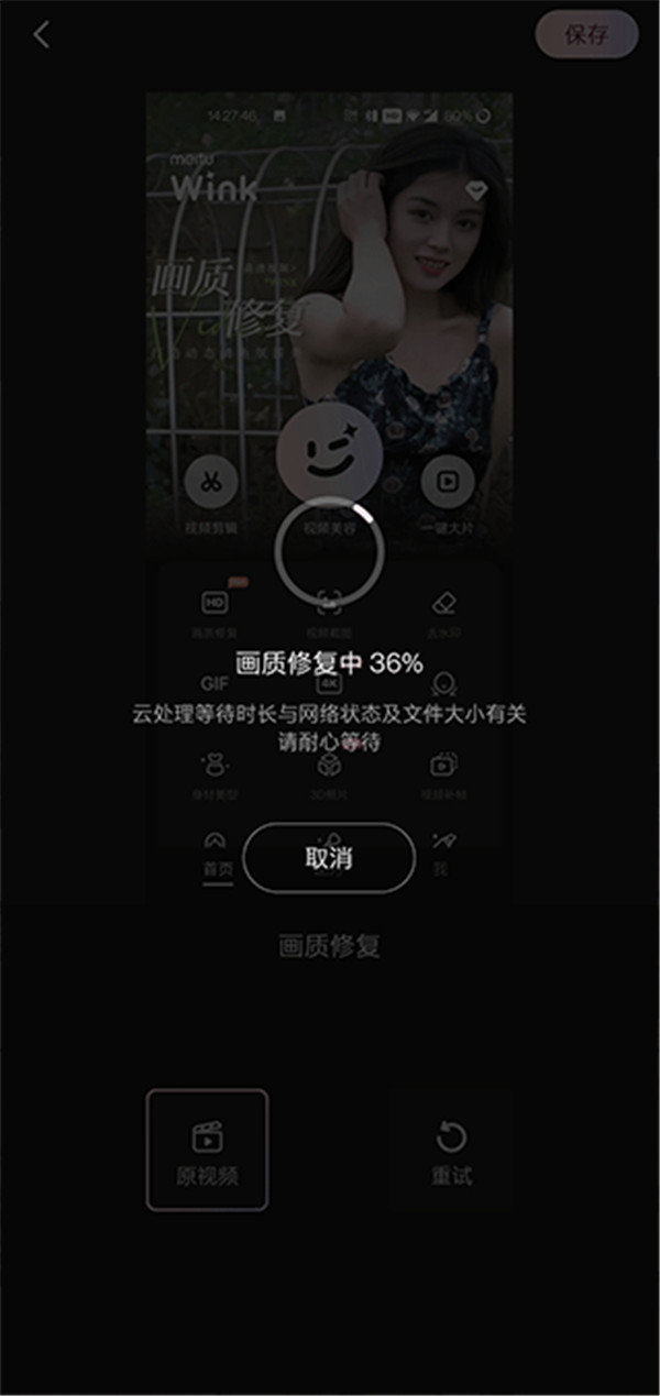 WINK(画质修复)软件依托MT Lab影像技术研发而成,是一款专注于视频画质提升的工具。它具备视频分辨率修复与图像增强功能,让用户能够一键轻松获得高清效果。借助智能算法,该软件可精准消除视频中的噪点与失真问题,全方位提升影像的清晰度;同时融合了美颜技术,为用户呈现精致且自然的视觉体验。无论是修复模糊的视频,还是进行人像美颜处理,使用WINK软件都能高效完成,堪称视频剪辑与画质优化领域的实用利器。