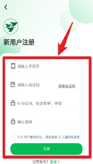 2新用户完成账号注册的流程十分便捷:首先进入注册界面,依次填写手机号码、输入收到的验证码,随后设置登录密码,最后勾选同意相关的服务条款与隐私说明即可。