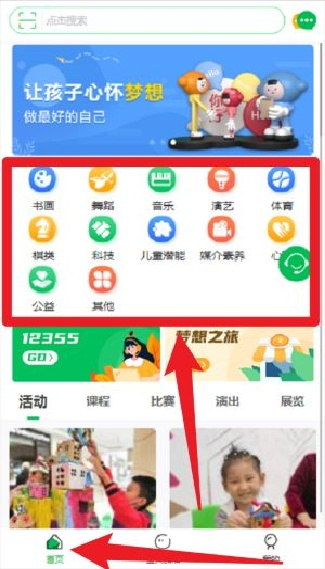 3进入平台主页后,家长可在书画创作、舞蹈律动、音乐启蒙等丰富多元的兴趣活动专区中自由挑选,帮助孩子发掘并找到真正适合自己的特长发展领域。