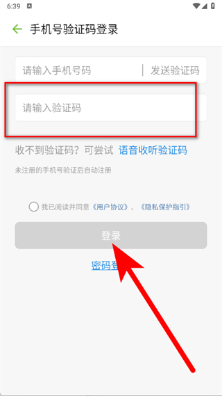4、输入收到的验证码,点击登录按钮,完成注册登录操作。