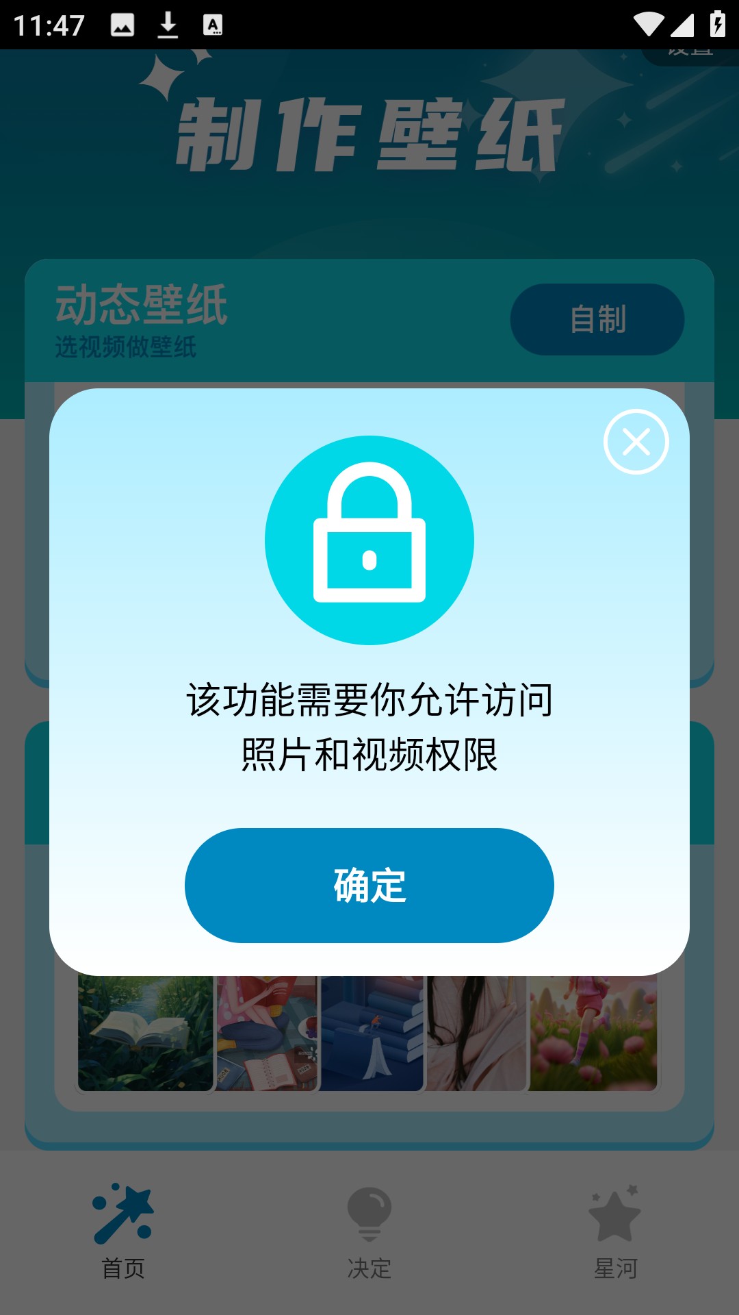 3、点击确认后跳转到设置界面,允许所需权限,即可开始自定义壁纸。