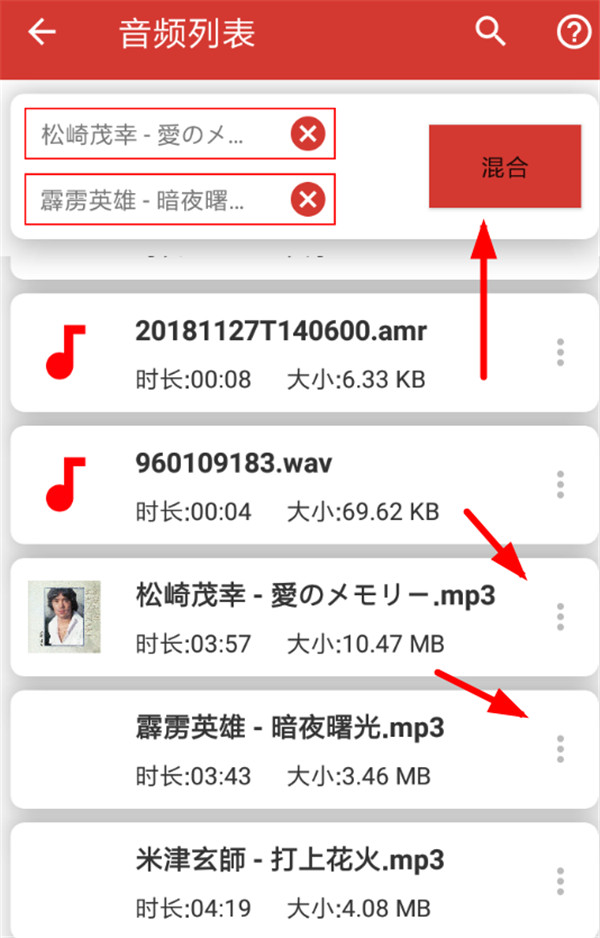 3、若想让音频呈现出别样的效果,可将两首音乐混合在一起,点击右侧按钮添加文件就能进行设置。