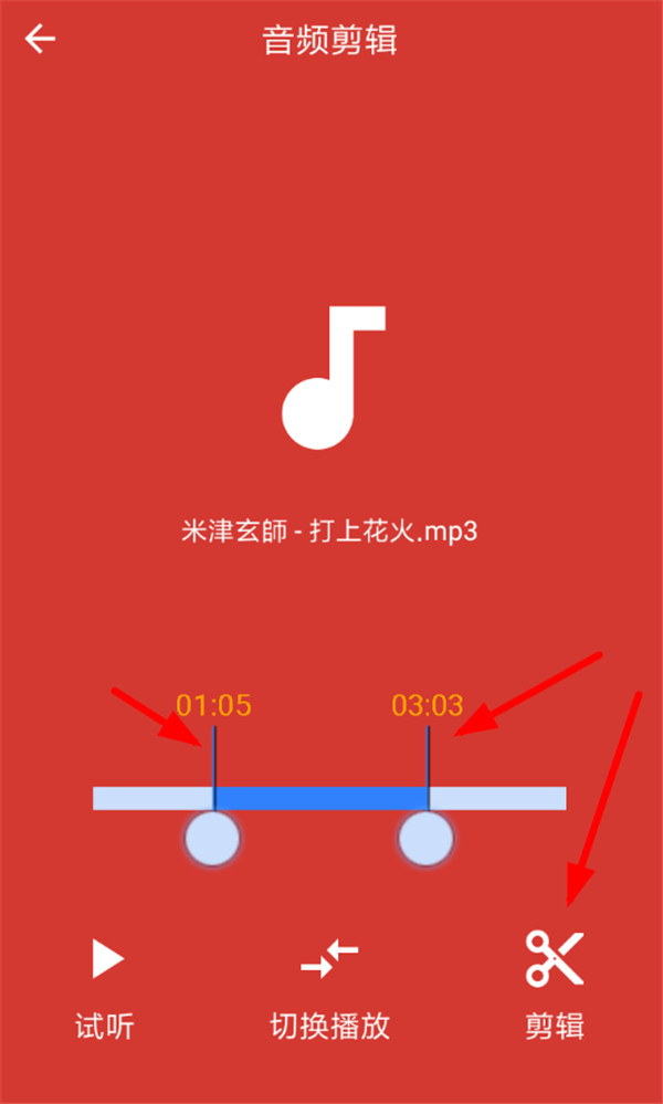 2、成功添加音频素材后,可滑动底部的进度条来调整具体的剪辑片段,最后点击右下角的“剪辑”按钮确认操作即可。