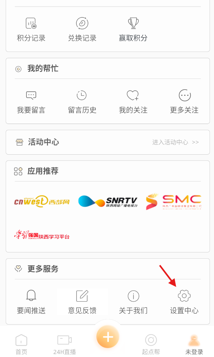 2、进入个人中心页面后,下滑屏幕找到“设置中心”选项。