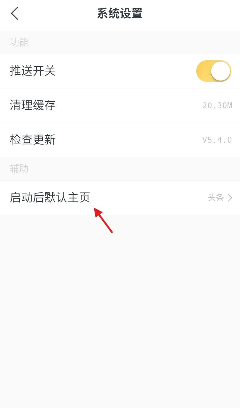 3、进入设置选项后,在辅助选项里找到“启动后默认主页”这一设置项。