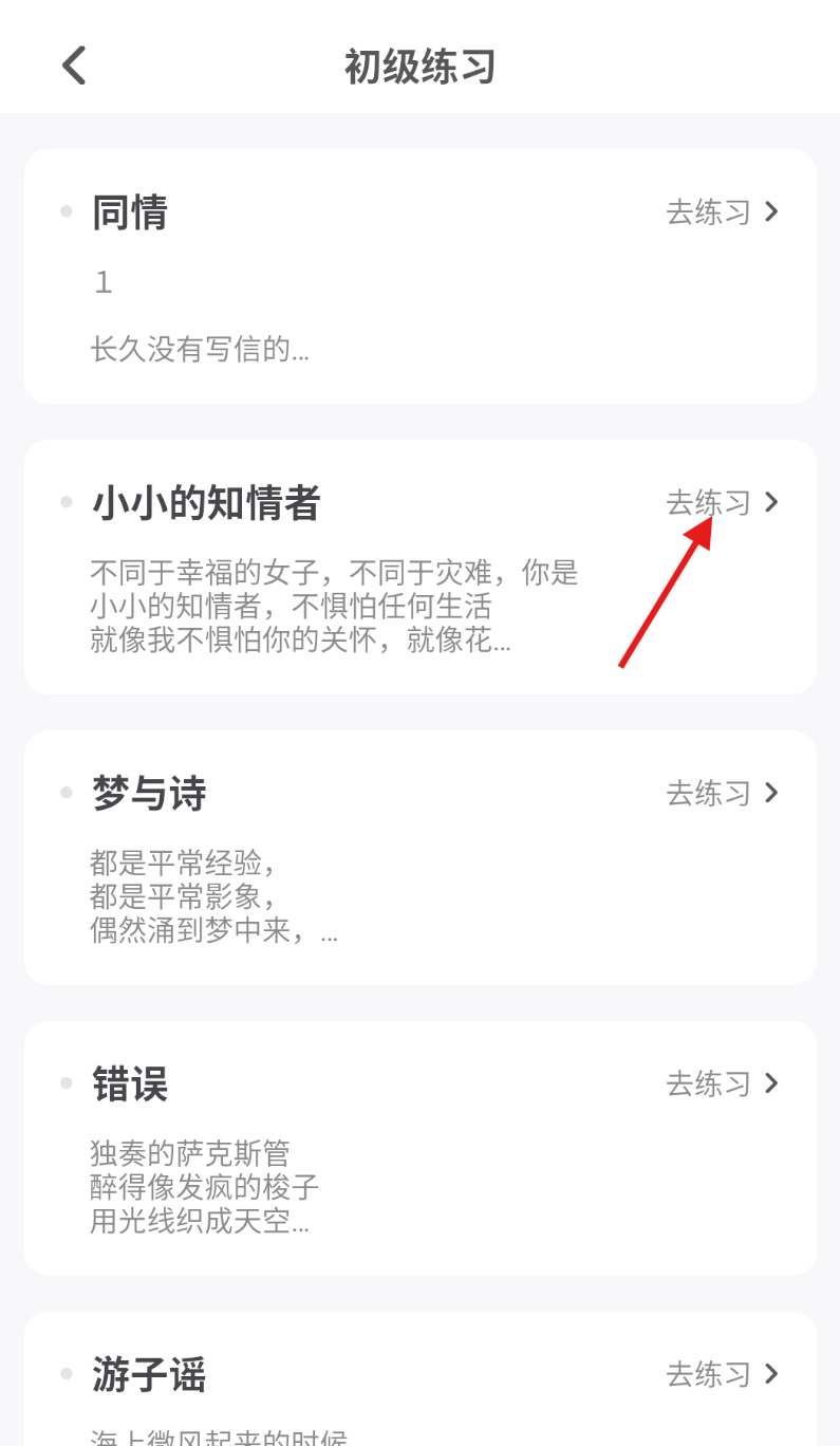 3、进入选定的练习类型页面后,页面会呈现多篇不同的文章,你可从中挑选一篇,点击即可开始练习。