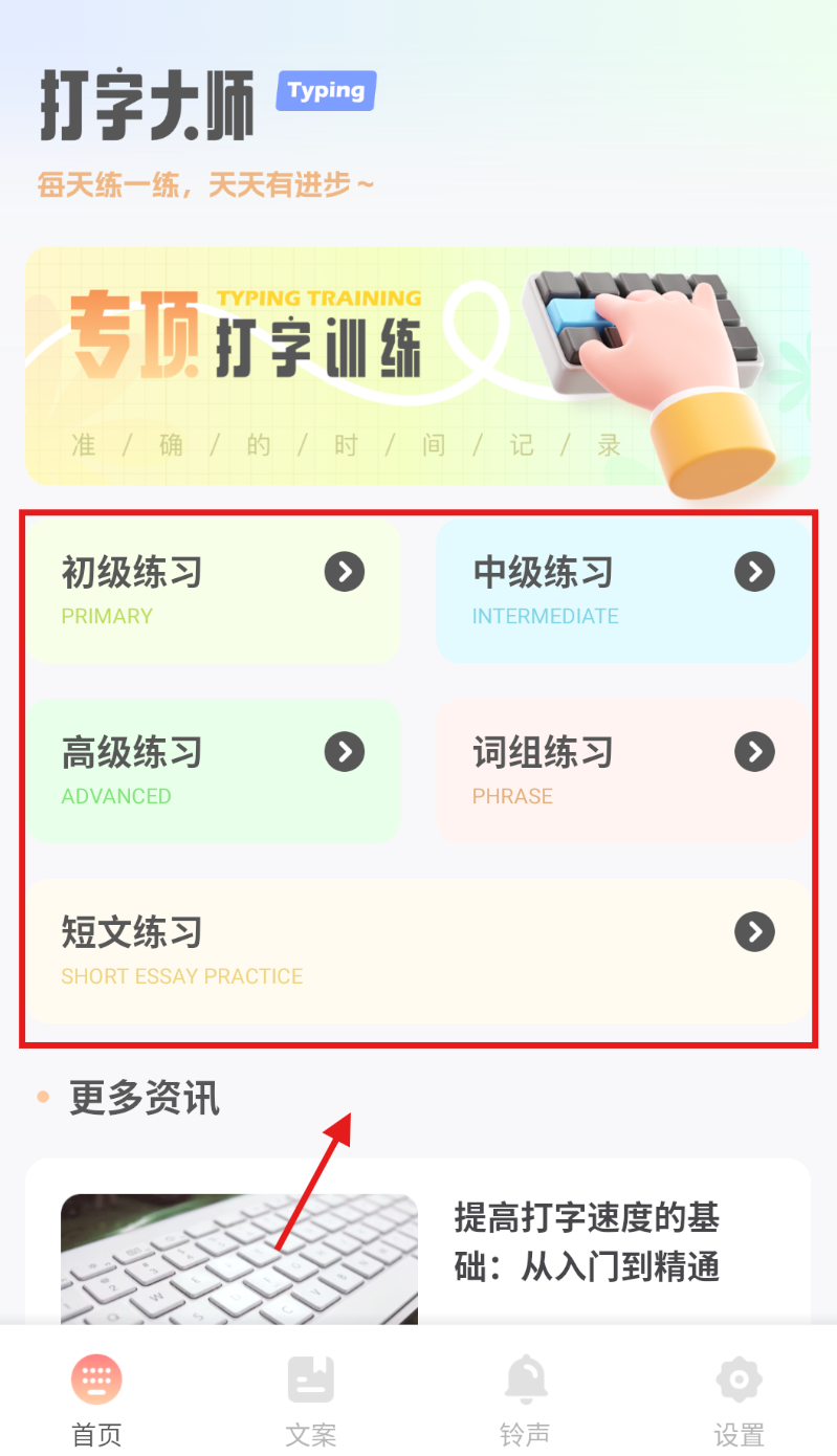3、丰富文本资源:精心挑选高频词汇、成语、短文等各类练习文本素材,以契合多样化的练习需求。