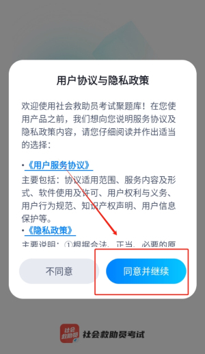 1、点击同意按钮,便可顺利进入应用,享受丰富的学习功能和资源,助力备考之旅。