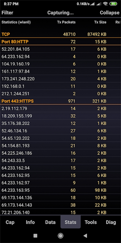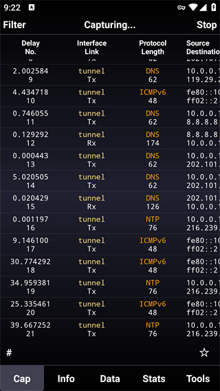 WiCAp是一款适用于Android设备的网络抓包工具,主要功能是捕获并分析网络数据包,能让用户实时监视设备的网络流量,同时查看数据包的各类详细信息。借助WiCAp,用户可以对捕获到的数据包展开深入分析,源IP地址、目标IP地址、协议类型以及数据内容等信息都能清晰查看。此外,它还具备强大的过滤器功能,可帮助用户筛选出感兴趣的特定数据包,支持按照源/目标IP地址、协议类型、端口号等条件进行精准过滤。