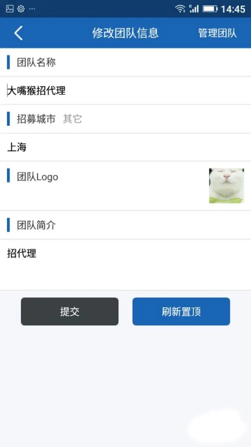 -进入【管理团队】界面进行成员管理、资料修改与招募操作**