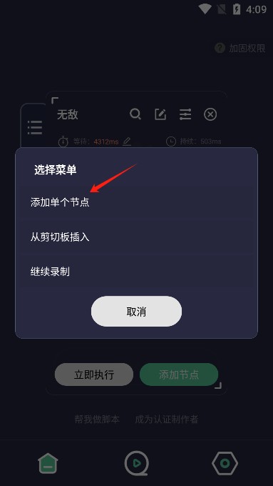 6、脚本设定完成后,可直接点击“立即执行”启动,也能进入下一步添加执行节点。