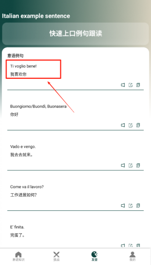 《跟我学意大利语》为用户打造了覆盖各维度的学习方案,依托多样化功能与海量资源,助力用户在日常学习和生活场景中更高效地掌握意大利语,推动语言能力持续进阶。