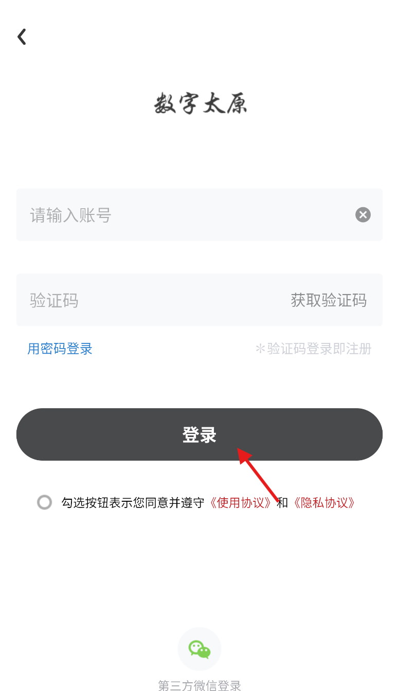 1、安装注册:前往应用市场搜索“数字太原”,完成安装后,通过手机号进行注册并登录账号。