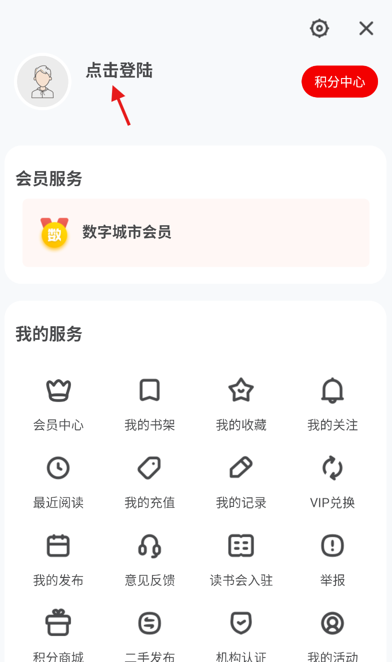 2、进入头像相关页面后,找到显眼的“点击登录”字样标识,点击进入登录界面。