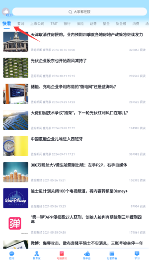 1、启动鲸平台后,在首页导航栏选择"电报快讯"栏目,这里汇集最新财经市场动态。