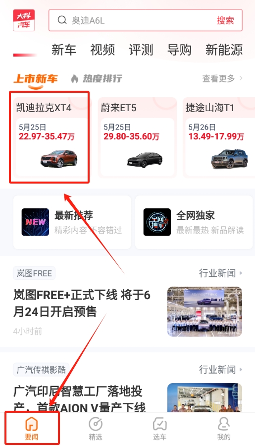 2、汽车资讯浏览操作指南:在首页查看要闻、行情等栏目板块,获取最新汽车行业动态与原创内容资讯。