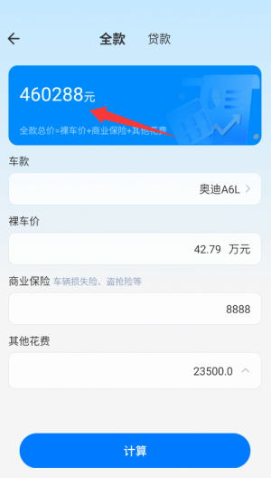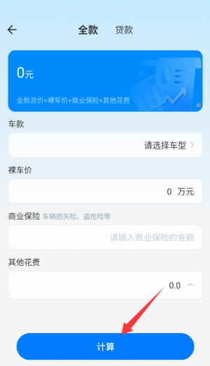 进入二手车估价大全后,在首页的工具栏里找到“车贷计算”功能并点击,即可进入计算器页面。