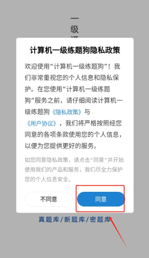1、打开应用后,点击同意按钮以进入主界面,确保获取完善的学习体验和服务。