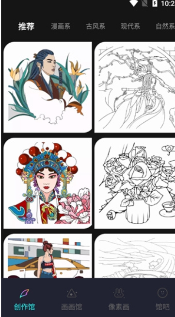 1、用户打开进入Pocket绘画后,可在的【创作馆】使用各种功能。