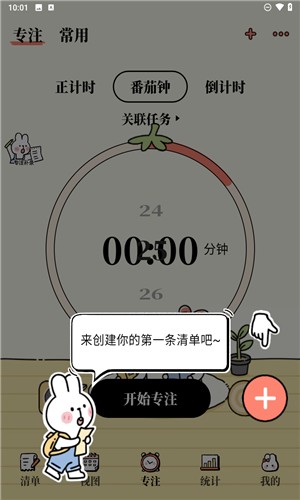 1、进入安装好的番茄计划,点击右下角的“+”按键,创建新清单。